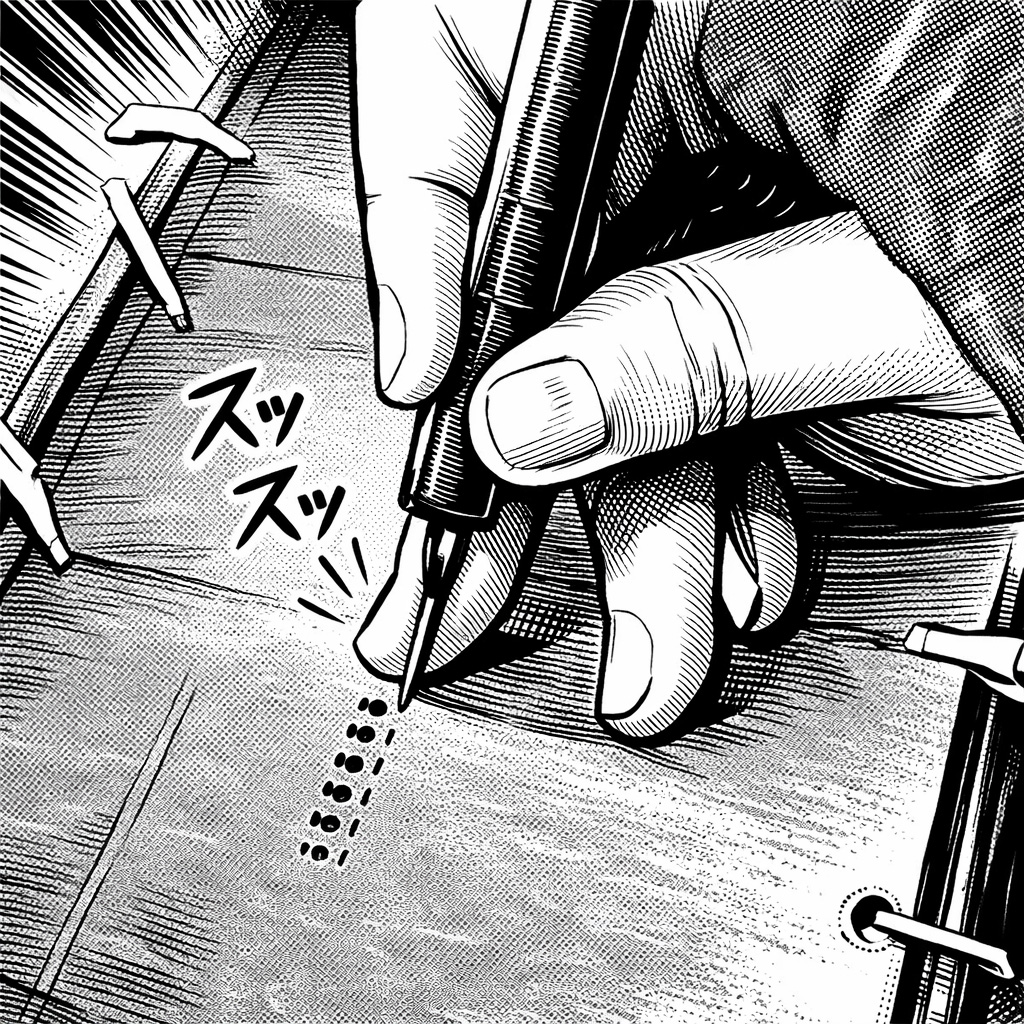 錐のように細く刃先が半円形の彫刻刀を垂直に立て、回転させることで一つの小さな孔を掘り、その連続または大小の穴の組み合わせだけで柄を作る。孔の数は一寸四方に900~1000個以上、最大1200個。回転させる丸い穴をあけ、単純な柄だけに高度な技術が求められる技法である。